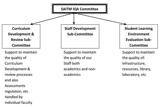 In order to ensure the continuous maintenance and development of high quality standards in every aspect of SAITM activities, SAITM appointed the Internal Quality Assurance (IQA) Committee in May, 2011 which is supervised by the Quality Assurance and Accreditation (QAA) Council of Sri Lanka, University Grants Commission, Ministry of Higher Education.